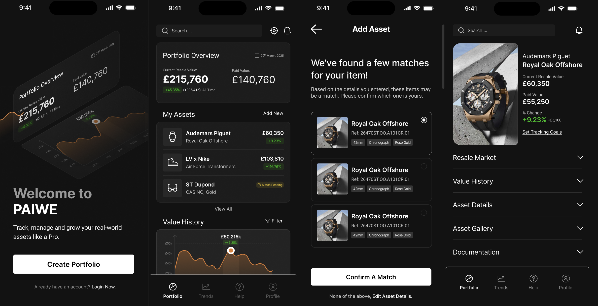Track the real resale value of your high-end pieces, so every watch, sneaker or gold coin you own works harder for your future.